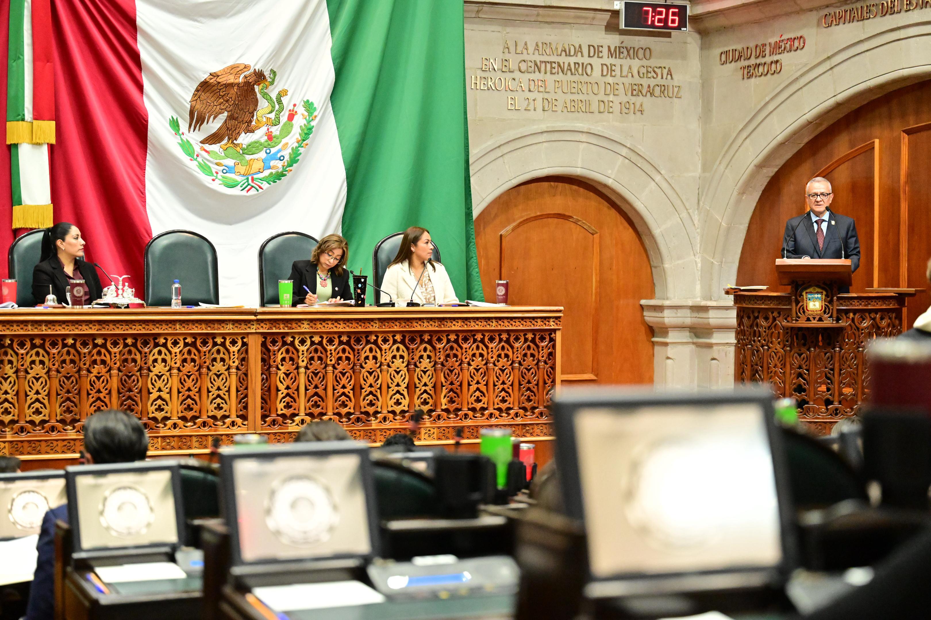“La administración de la Maestra Delfina Gómez Álvarez, ha asumido este problema como una auténtica y determinante política de estado, esta administración no va a evadir el problema, ni va a optar por simulaciones, vamos a actuar bajo tres principios rectores que son honestidad, justicia social y responsabilidad fiscal”, señaló Óscar Flores Jiménez, Secretario de Finanzas, durante comparecencia en la Legislatura local.