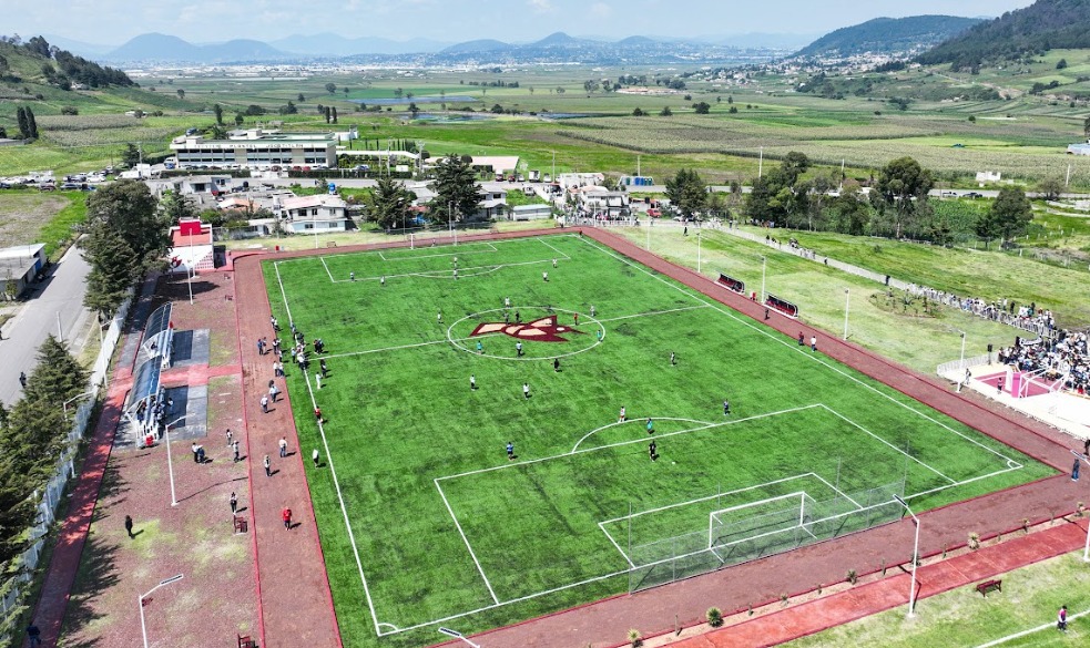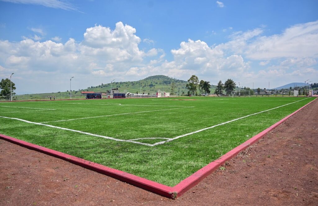 - Está construida sobre una superficie de 23 mil metros cuadrados y cuenta con una cancha de futbol, trotapista, sistema de iluminación y cancha de usos múltiples.