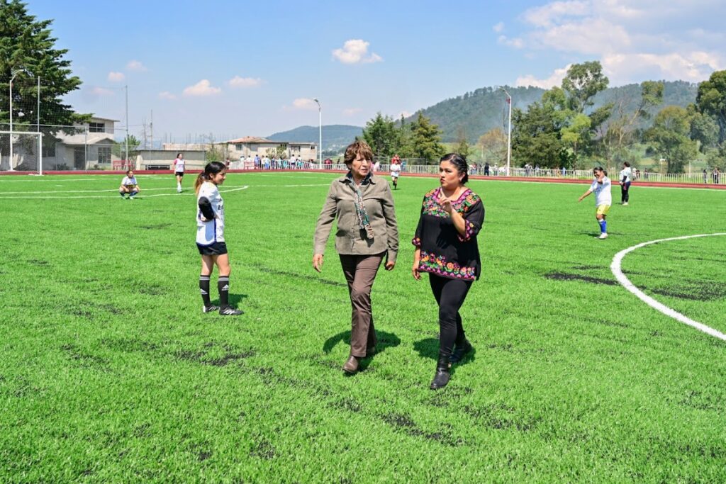 JOCOTITLÁN, Estado de México.– La Gobernadora Delfina Gómez Álvarez entregó la Unidad Deportiva Santiago Casandejé en Jocotitlán, que beneficiará a habitantes de los pueblos originarios mazahua y otomí; la acción, que forma parte del Programa de Obra Pública estatal, tuvo una inversión de 22.3 millones de pesos y permitió la creación de mil 924 empleos en la región.
