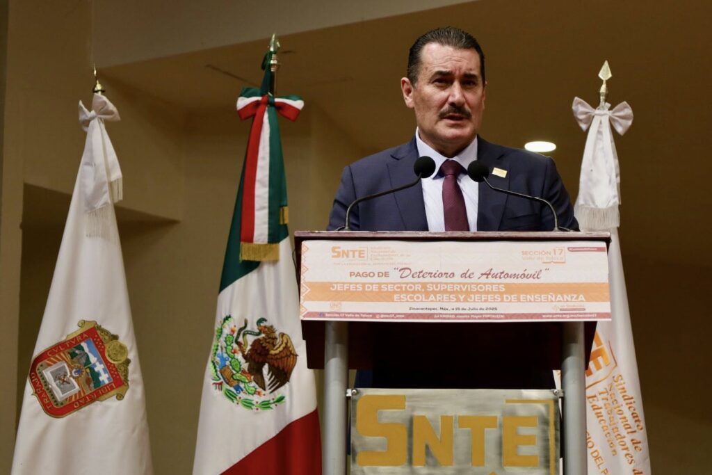 “Su liderazgo es la columna vertebral que organiza, resuelve, impulsa y da sentido al trabajo colectivo […] en nuestro sindicato reconocemos y respaldamos su labor, así es posible alcanzar los niveles de excelencia, equidad y dignidad de nuestras escuelas, nuestros alumnos y compañeros maestros; el pago por el deterioro de sus vehículos es una conquista sindical, una prestación que es posible gracias a la